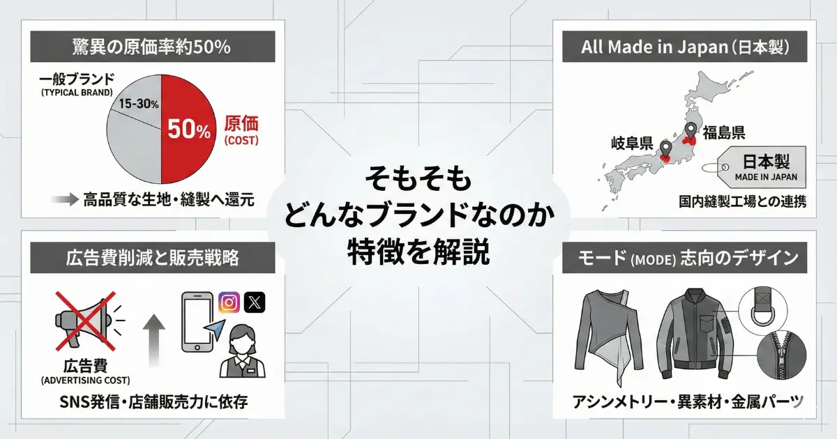 このブランドを語る上で絶対に外せないのが、「原価率約50%」という、アパレル業界の常識を根底から覆すビジネスモデルです。