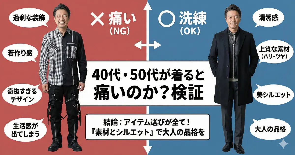 さて、ここが最も検索される悩みの一つではないでしょうか。「40代、50代がユナイテッドトウキョウを着ると、若作りで痛い人に見られないか?」という懸念です。結論から申し上げますと、アイテム選びの視点さえ持っていれば、全く問題ありませんし、むしろ強く推奨できるブランドです。