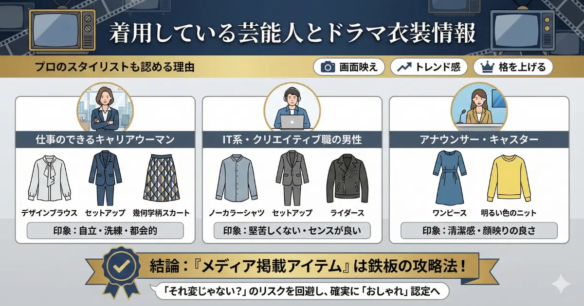 もし「ダサい」と心配なら、まずはドラマで着用されたような「メディア掲載アイテム」から入るのが鉄板の攻略法です。これらは多くの人の目に触れ、肯定的に受け入れられた実績があるため、着用していて「それ変じゃない?」と言われるリスクを極限まで減らすことができます。
